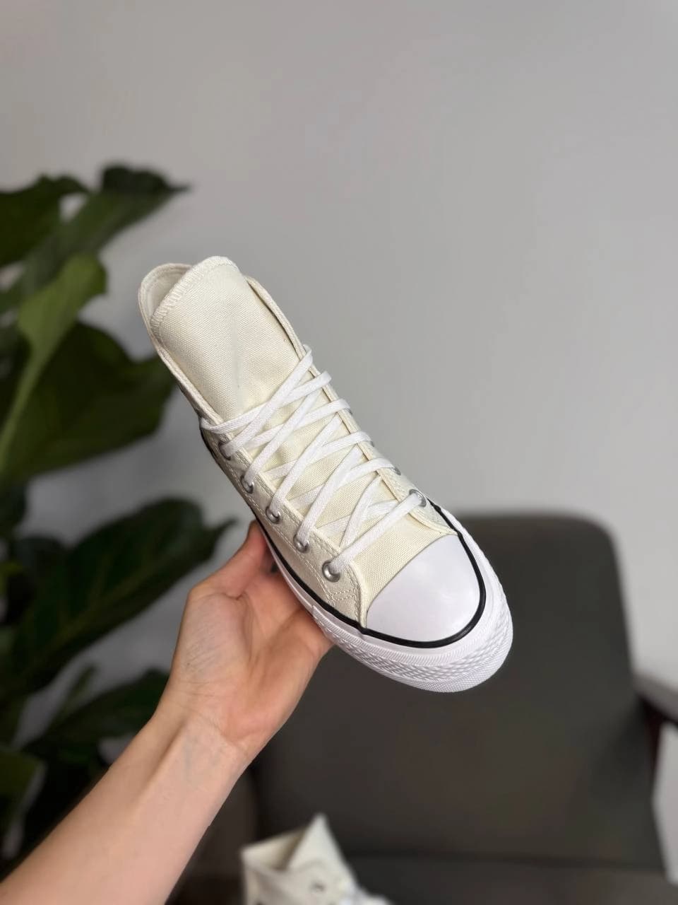 - Верх: Міцний текстильний матеріал (канвас) кольору слонової кістки