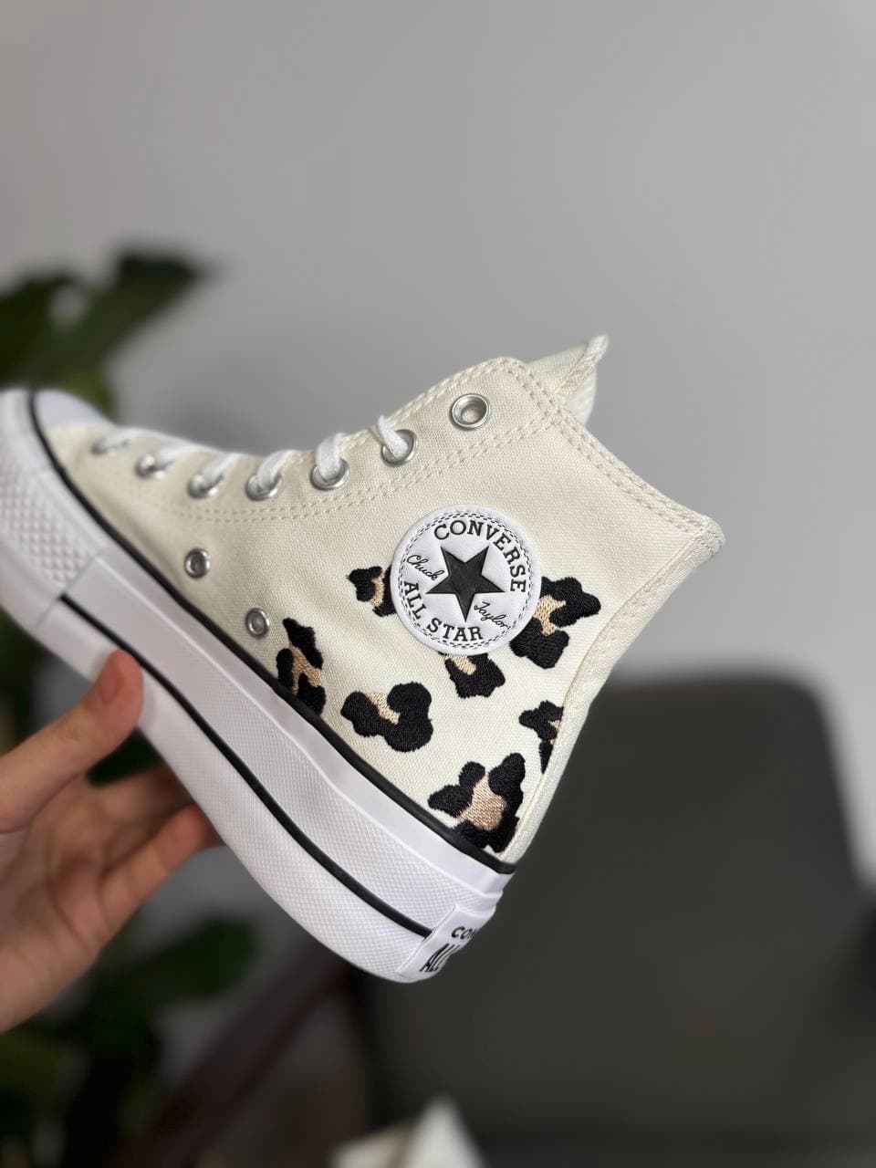 - Дизайн: Принт під леопарда на задній частині та фірмовий патч з логотипом All Star на внутрішній стороні щиколотки.