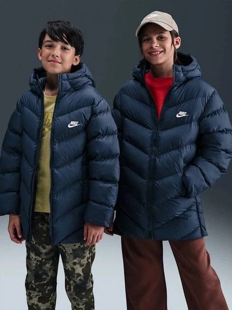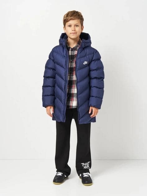 Дитяча зимова куртка Nike Sportswear Synthetic-Fill Hooded Parka (DX1268-410) — тепла та довга куртка з синтетичним утеплювачем і м’якою підкладкою, що забезпечує комфорт та захист від холоду в зимовий сезон. Модель має капюшон для додаткового захисту, водовідштовхувальну обробку і зручні кишені для дрібниць, а також продумана для активного щоденного використання та комфортного носіння на вулиці навіть у низькі температури.