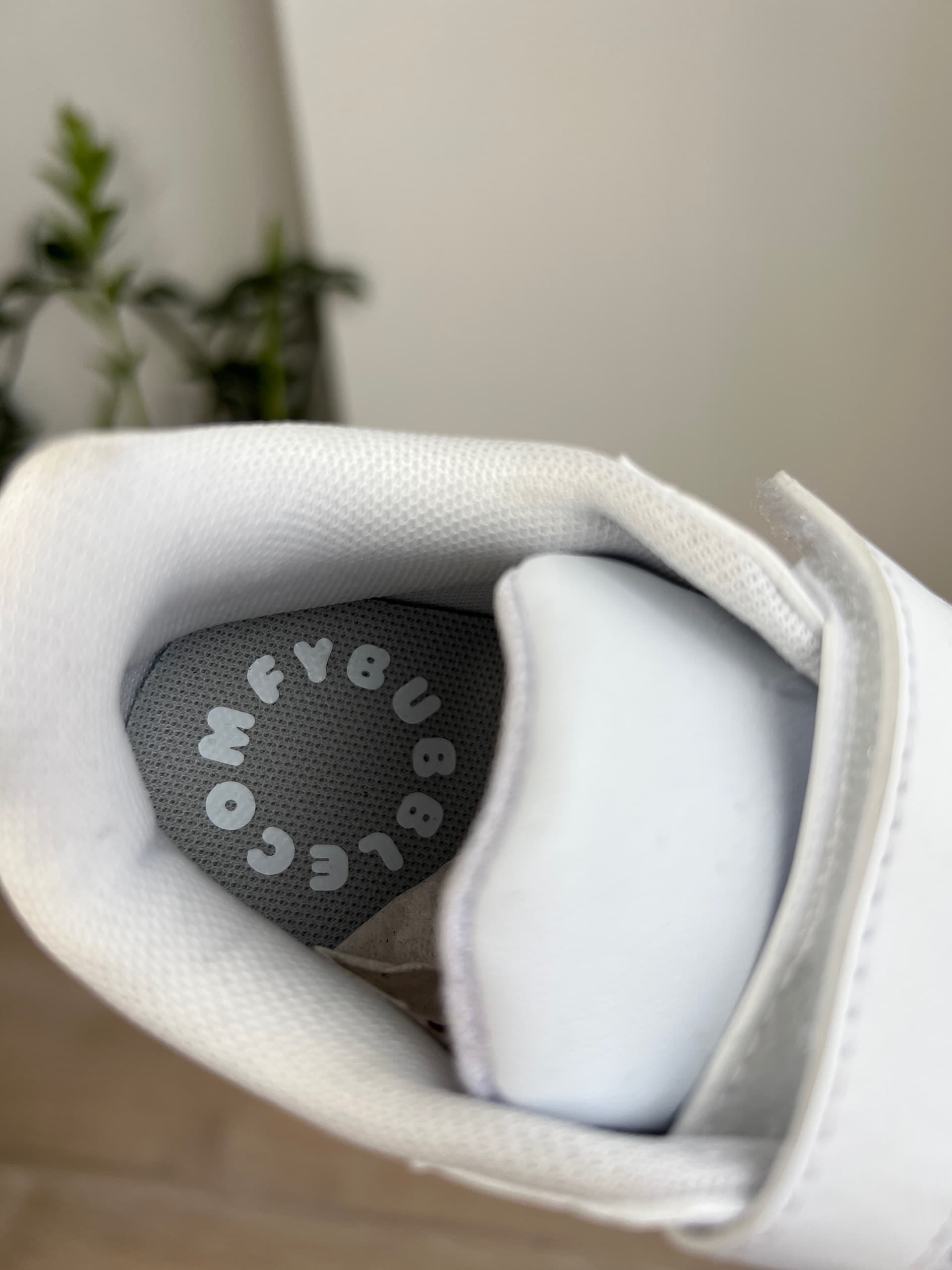 Верх виконаний із якісних синтетичних матеріалів білого кольору.