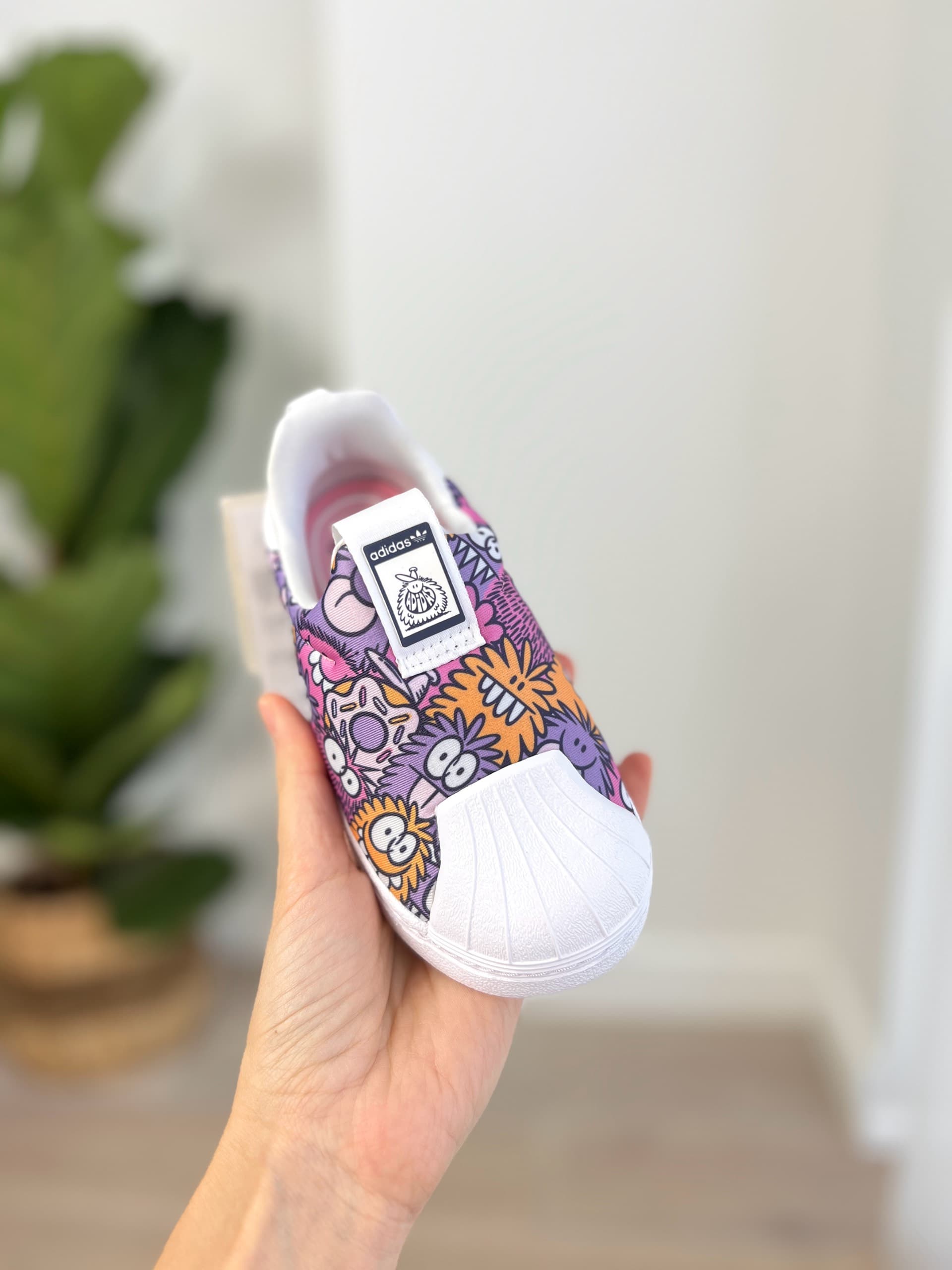 Ці кросівки є результатом співпраці Adidas з бруклінським художником Кевіном Лайонсом (Kevin Lyons). Вони мають яскравий фіолетово-рожевий дизайн з принтами монстрів, що є фірмовим стилем художника.