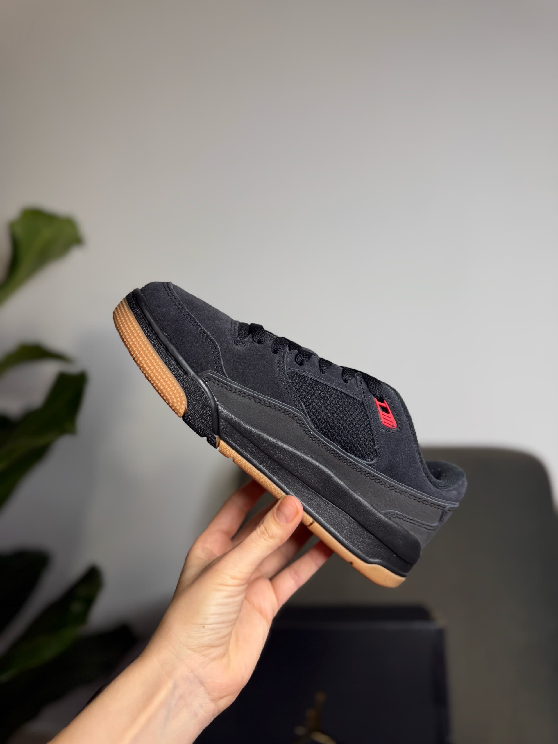 Це стильні низькопрофільні кросівки Air Jordan Flight Court у чорному кольорі з коричневими гумовими акцентами (код HF3255‑001) — сучасна лайфстайл‑модель, натхненна класичними силуетами Air Jordan 3, 4 та 5. Верх поєднує шкіру, замшу та текстиль, що забезпечує міцність і вентиляцію, а гумова підошва з амортизацією робить носіння комфортним для щоденних образів. Їхній універсальний дизайн легко вписується в casual та вуличний стиль.