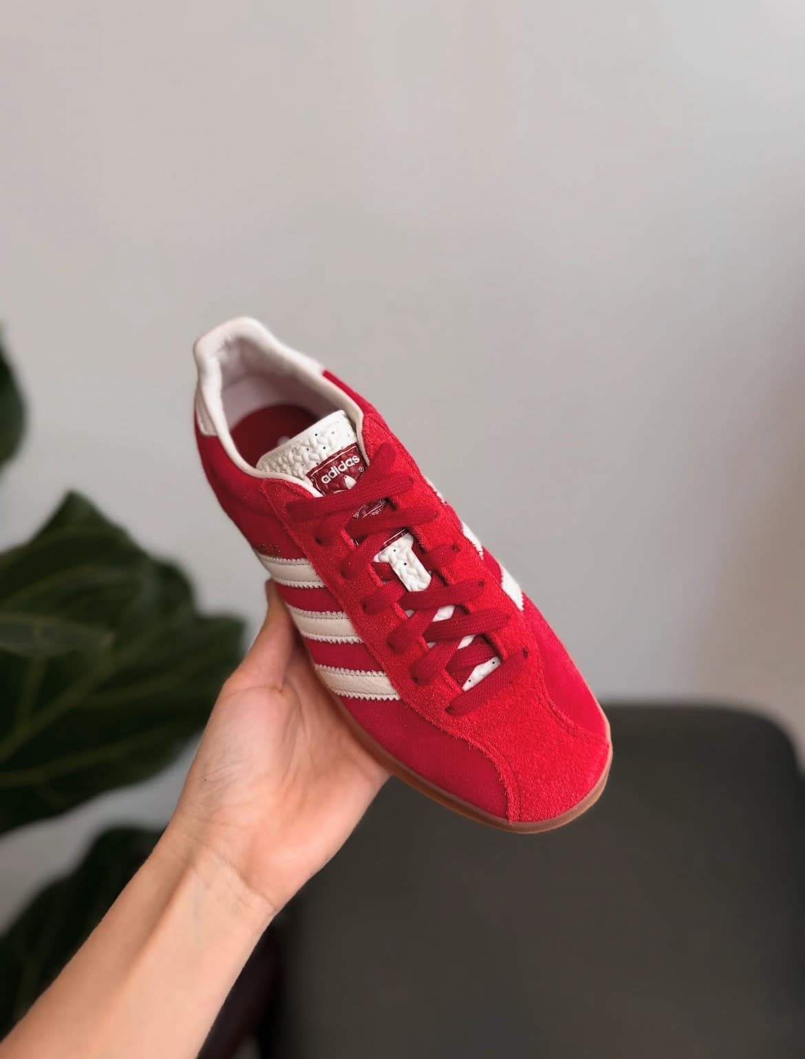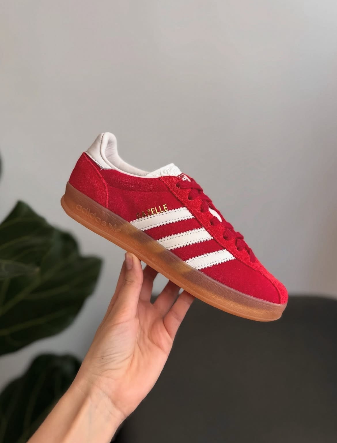Жіночі adidas Gazelle Indoor поєднують культовий ретро-силует із сучасним повсякденним комфортом. Вони мають м’який верх із преміальної замші з класичними трьома смугами adidas та зручну низькопрофільну посадку, що забезпечує універсальність стилю. Контрастна червона та біла колірна гама доповнюється гумовою підошвою для надійного зчеплення й довговічності, перетворюючи цю класику в ідеальний вибір як для активних буднів, так і для стильних образів у місті.
