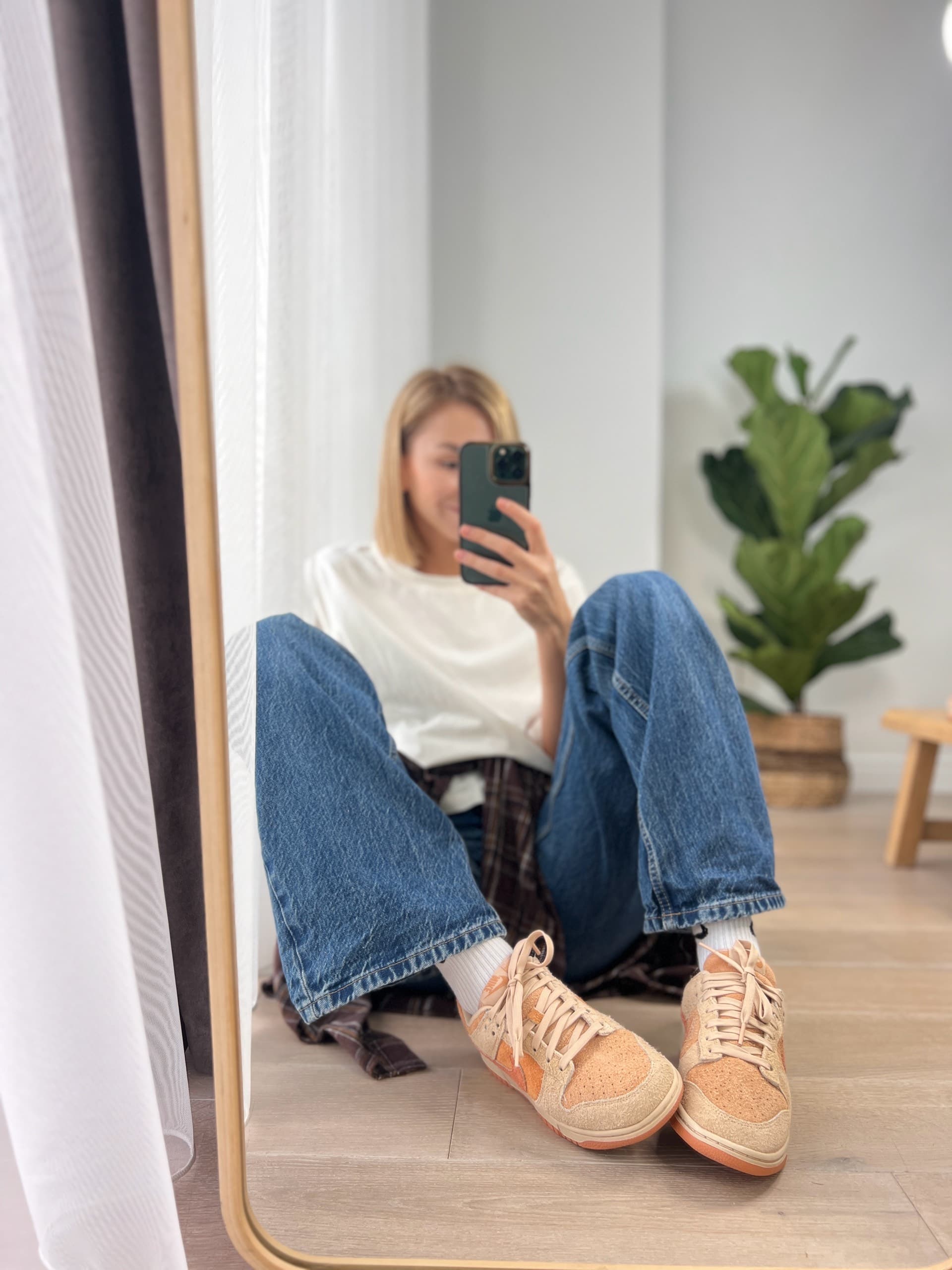 Підошва має кремовий відтінок, а зовнішня підошва — помаранчевий. Модель Dunk Low вперше з'явилася в 1985 році як баскетбольне взуття і згодом стала культовим силуетом для повсякденного носіння.