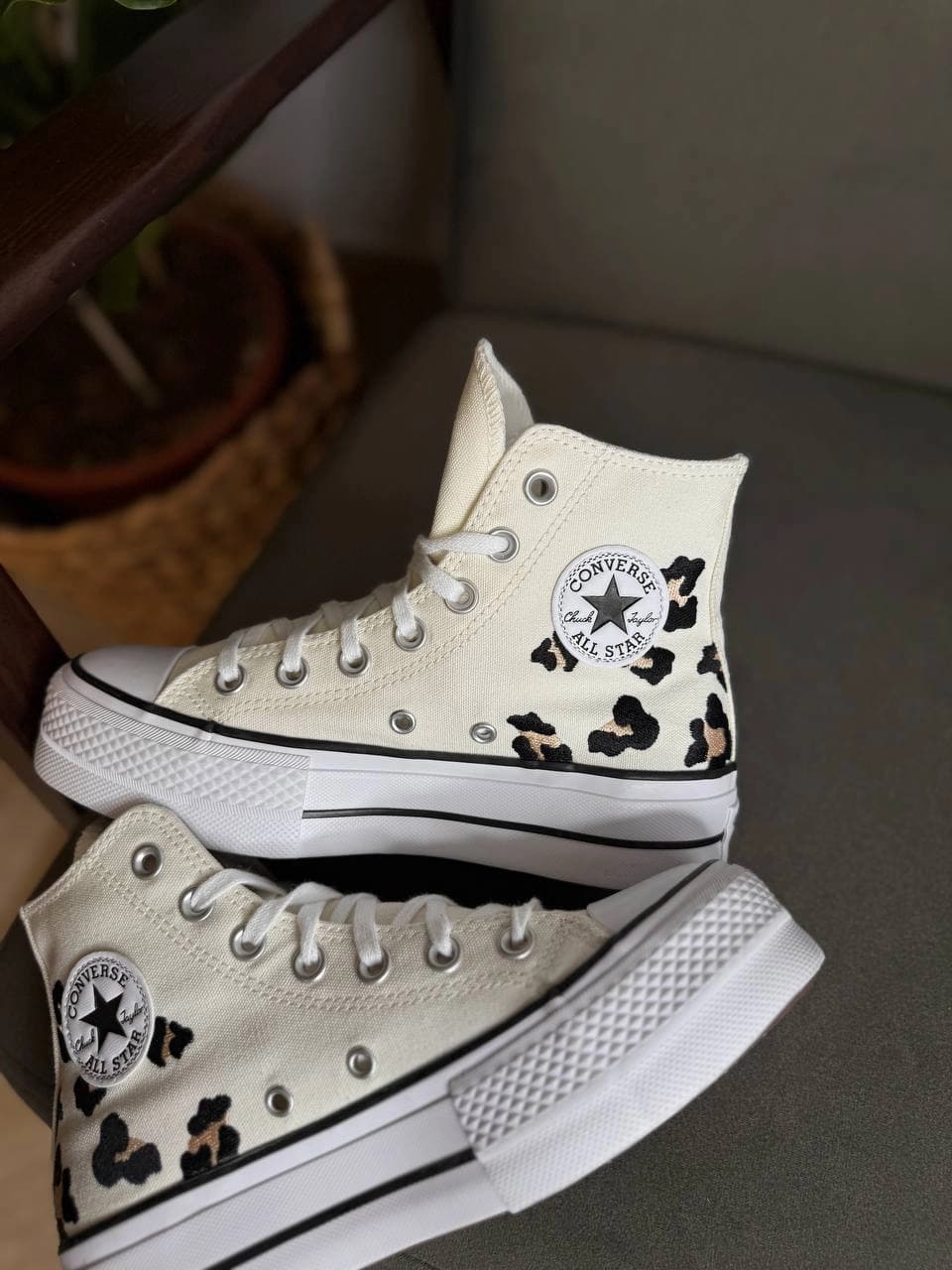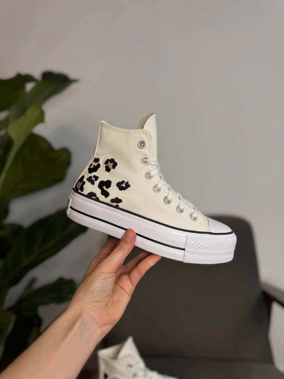 - Дизайн: Принт під леопарда на задній частині та фірмовий патч з логотипом All Star на внутрішній стороні щиколотки.