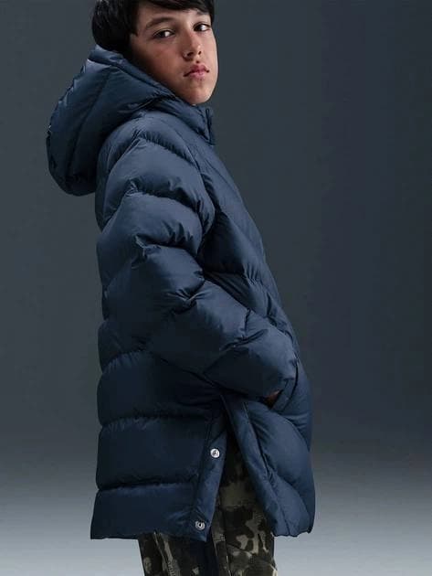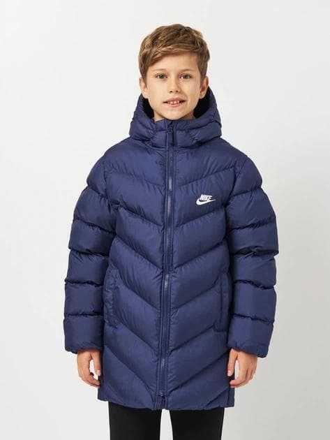 Дитяча зимова куртка Nike Sportswear Synthetic-Fill Hooded Parka (DX1268-410) — тепла та довга куртка з синтетичним утеплювачем і м’якою підкладкою, що забезпечує комфорт та захист від холоду в зимовий сезон. Модель має капюшон для додаткового захисту, водовідштовхувальну обробку і зручні кишені для дрібниць, а також продумана для активного щоденного використання та комфортного носіння на вулиці навіть у низькі температури.