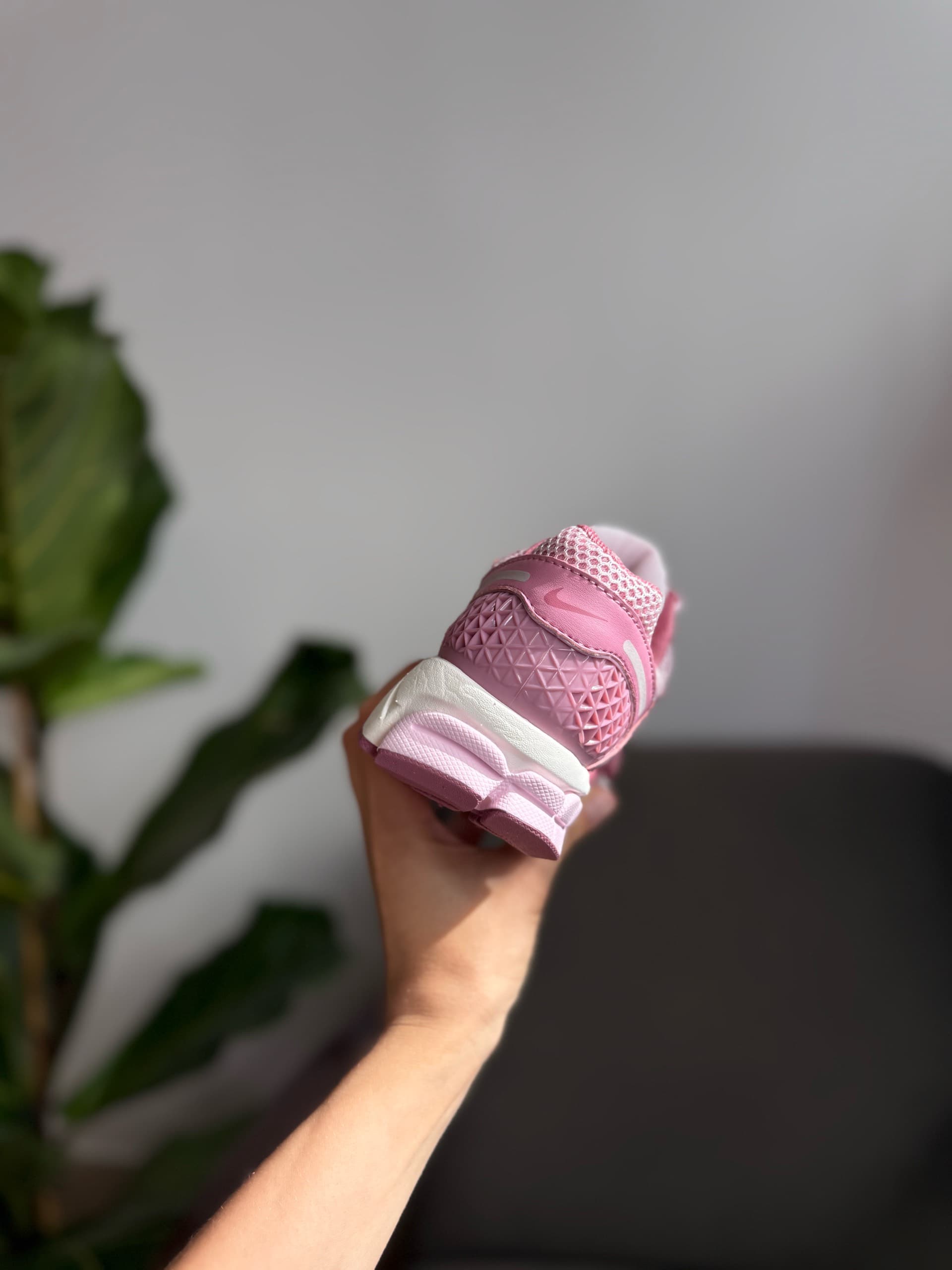 Стильні жіночі кросівки Nike Air Zoom Vomero 5 у рожевому виконанні — поєднання комфортної амортизації Zoom Air і сучасного багатошарового дизайну. Верх із дихаючого текстилю з накладками із синтетичної шкіри забезпечує підтримку та добре сидіння на нозі, а м’яка піна та подушка Zoom Air підошви — плавний, енергійний хід. Резинова підошва дарує надійне зчеплення з поверхнею, а трендовий рожевий колір робить ці кросівки яскравим акцентом у повсякденному образі.