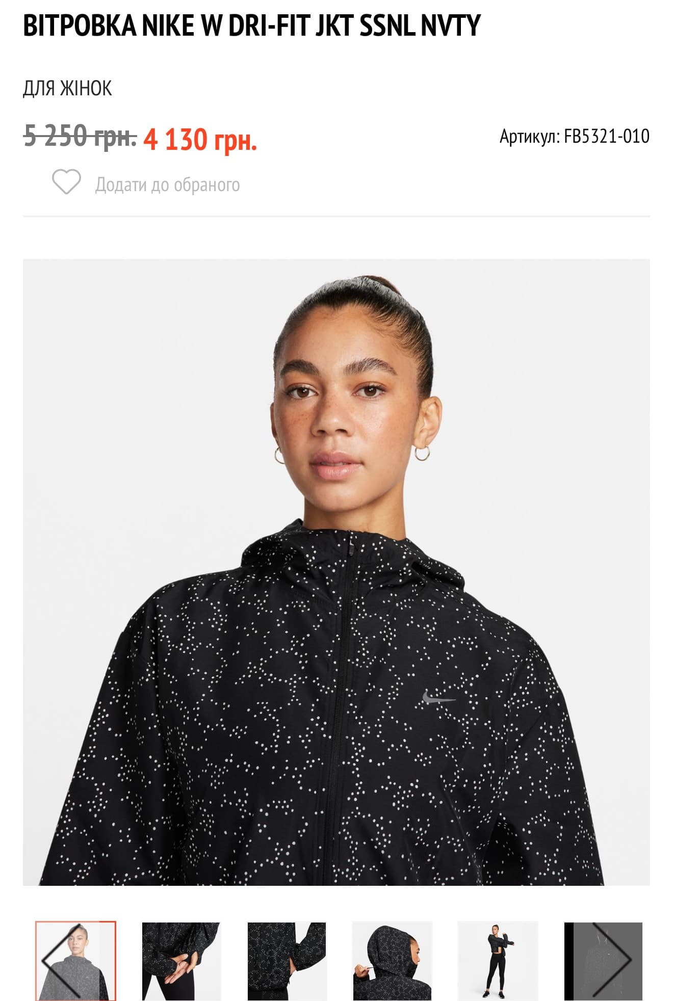 Вітровка жіноча Nike Dri-Fit Black FB5321-010