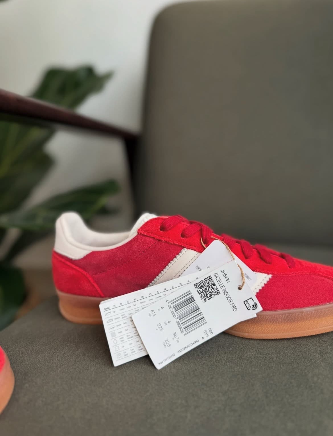 Жіночі adidas Gazelle Indoor поєднують культовий ретро-силует із сучасним повсякденним комфортом. Вони мають м’який верх із преміальної замші з класичними трьома смугами adidas та зручну низькопрофільну посадку, що забезпечує універсальність стилю. Контрастна червона та біла колірна гама доповнюється гумовою підошвою для надійного зчеплення й довговічності, перетворюючи цю класику в ідеальний вибір як для активних буднів, так і для стильних образів у місті.
