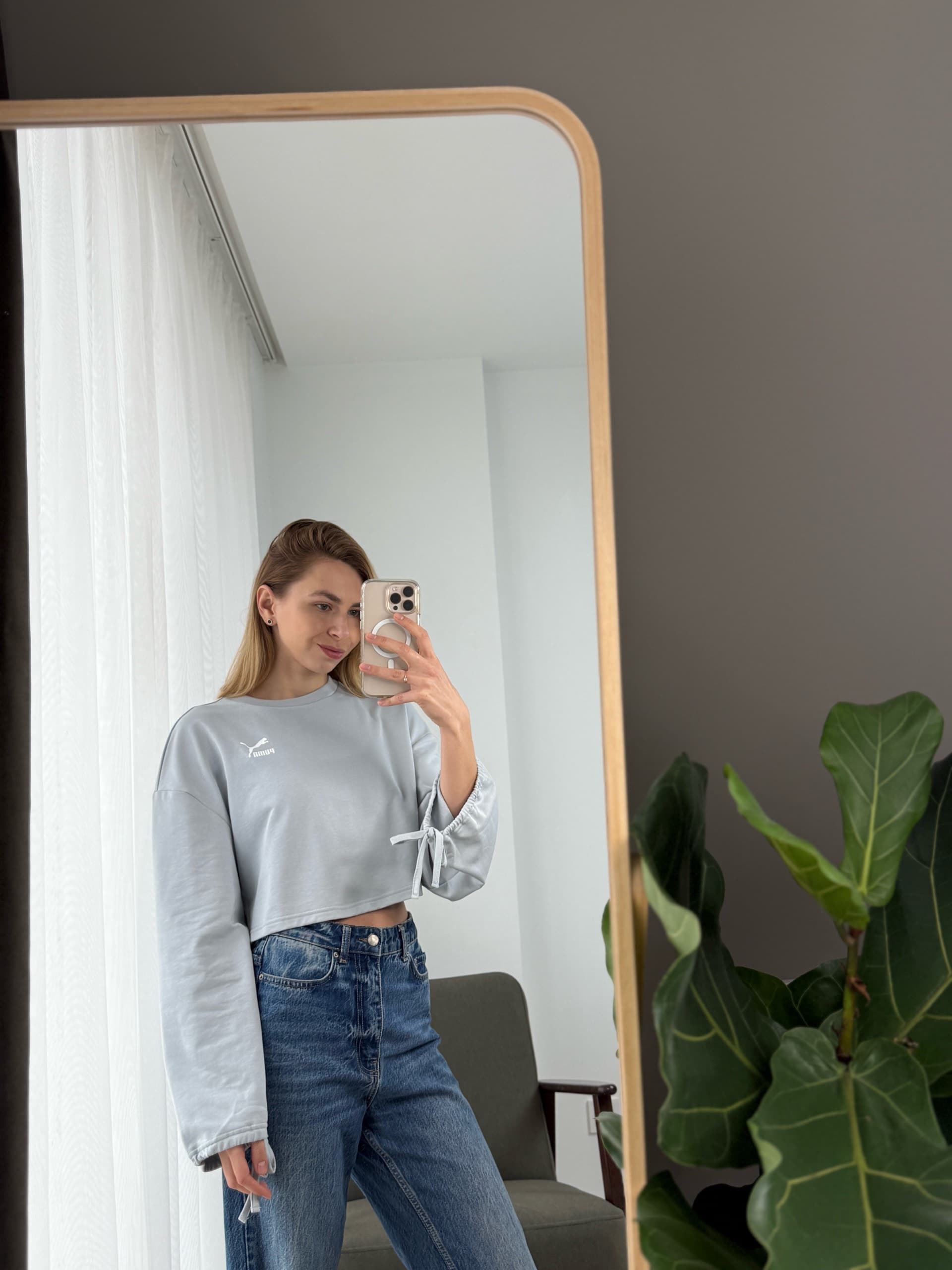 Дизайн: Модель має вкорочений фасон (crop) з круглим вирізом горловини. На рукавах присутні декоративні зав'язки, що є характерною деталлю Puma.